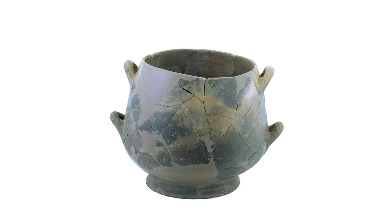 The ceramic vessel was found in hut C of the nuragic village of S’Urbale in Teti. It was placed near the hearth. The cylindrical shape with with two pairs of handles is characteristic of the Final Bronze Age. The object is dated between the 12th and 10th centuries BC.