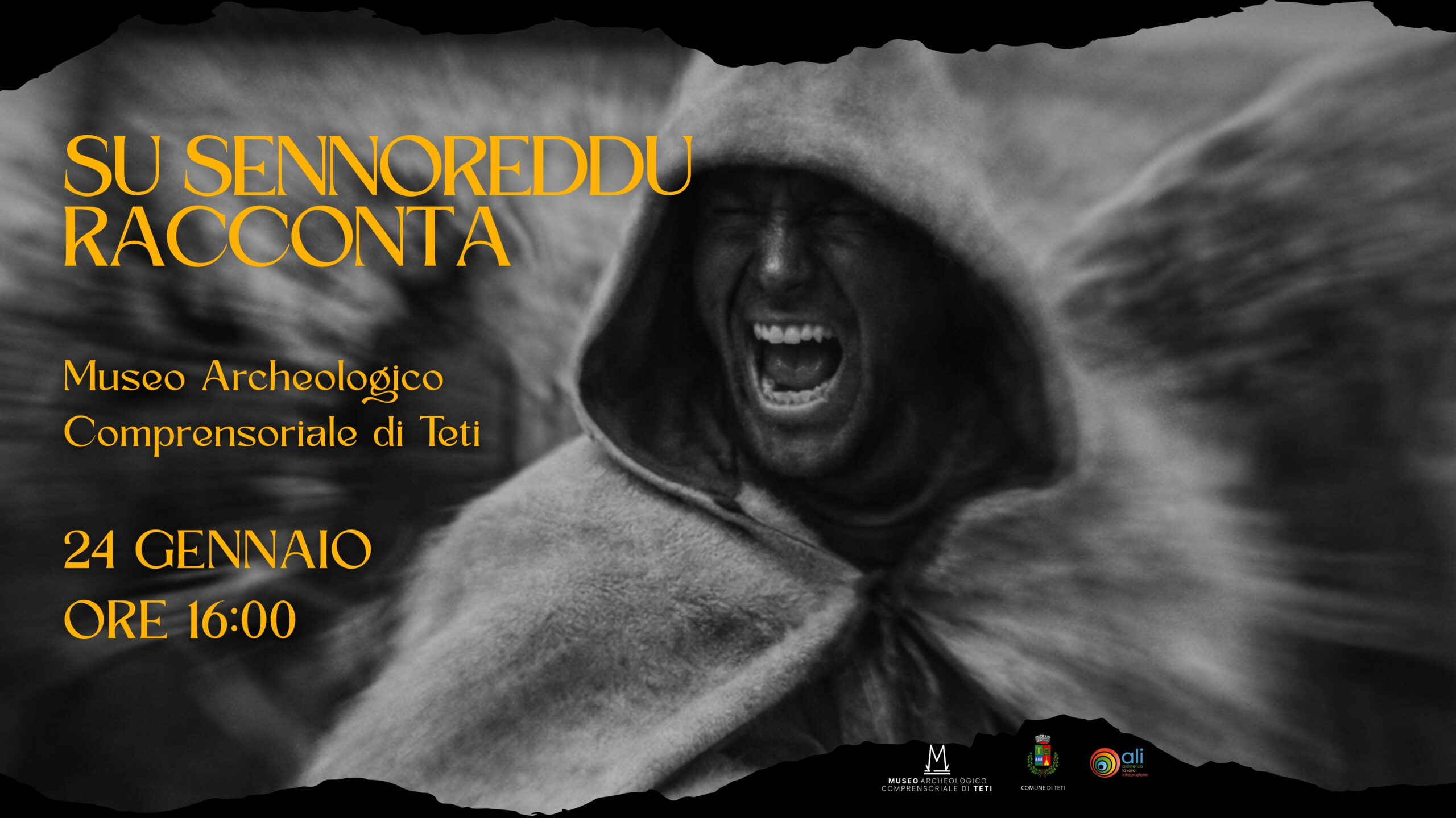Il 24 Gennaio dalle ore 16 presso il Museo Archeologico Compresoriale di Teti, l’Ass.ne Culturale “Su Sennoreddu e Sos de S’Iscusorzu”, in occasione del Carnevale 2026 racconterà la storia della maschera, il rito e la legenda 🔥